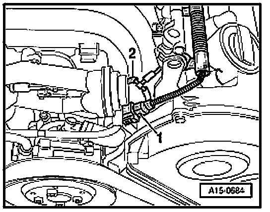 - Connect voltage tester VAG 1527 B between terminals 1 and 2.