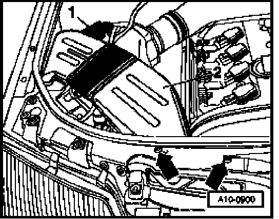 - Disconnect cover -1- on left in engine compartment.