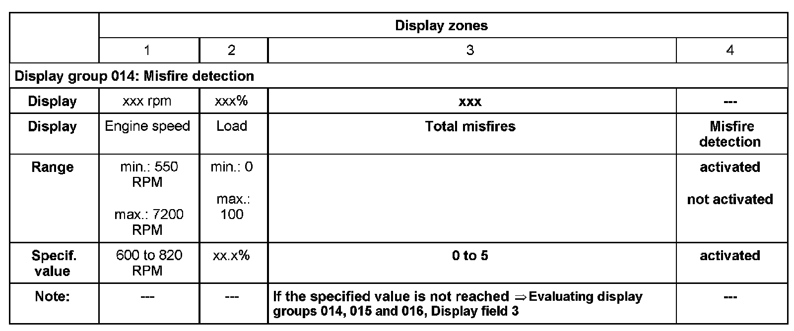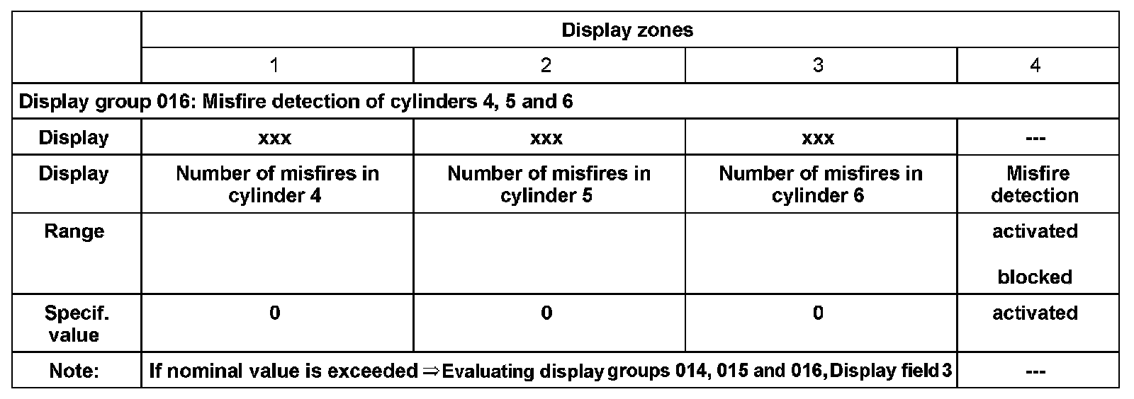 Evaluating display groups 014, 015 and 016, Display field 3: