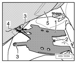 - Carefully pull mat for seat occupied recognition - 1 - with upholstery - 5 - upward, when doing this guide Seat Occupied Recognition Pressure Sensor -G452- and Seat Occupied Recognition Control Module -J706-through seat pan without disconnecting harness connectors.