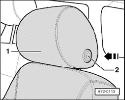 - Press release button - 2 - on headrest - 1 - until stop - arrow -.