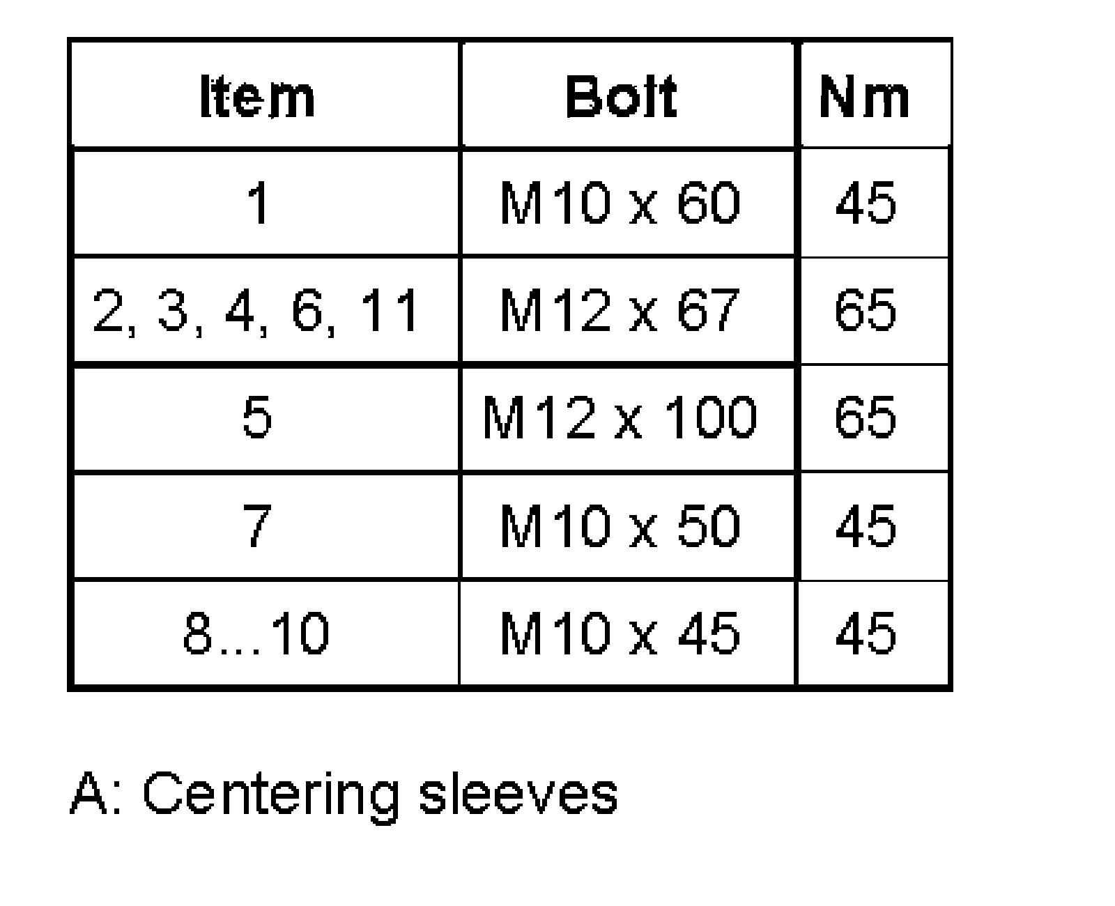 Tightening torques