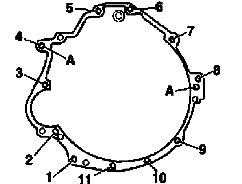 Engine/ transmission bolted connection (transmission flange face).