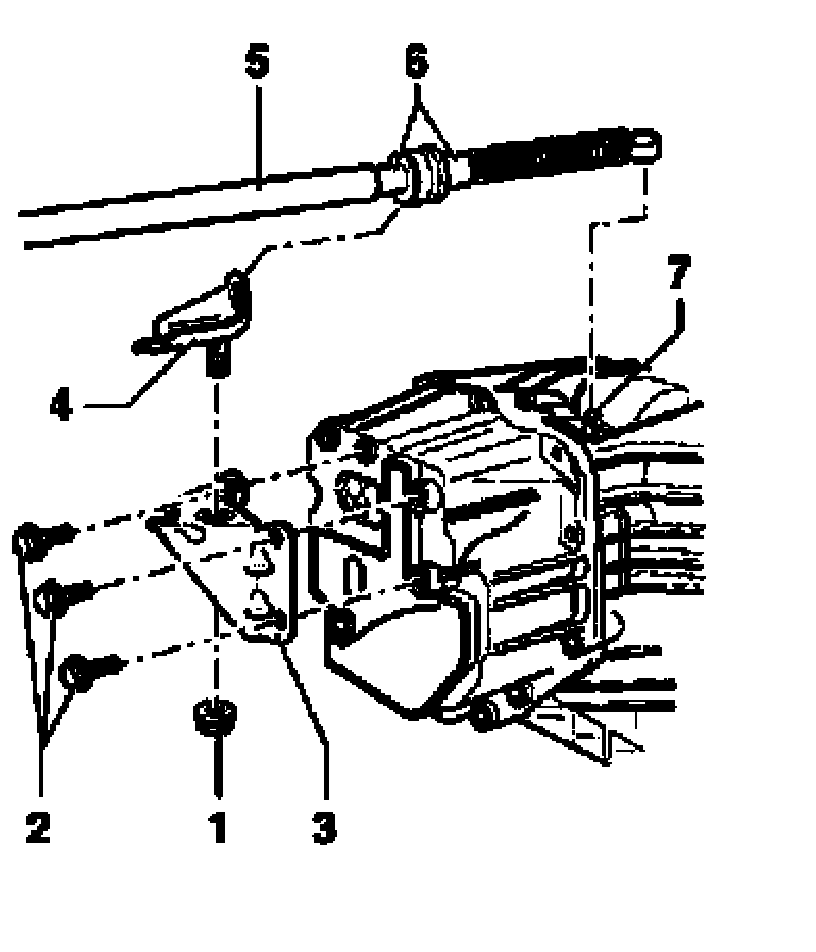 - Check whether selector lever is in position "P" and carefully press socket end of selector lever cable -5- onto selector shaft lever -7-.