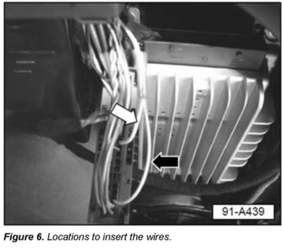 On TT roadster vehicles, the wire is inserted into cavity 25 of the amplifier connector.