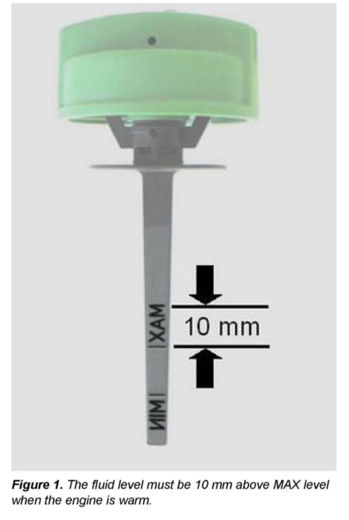 ^ With engine warm (engine oil temperature 80� C /176� F), fluid level must be 10 mm above MAX level.