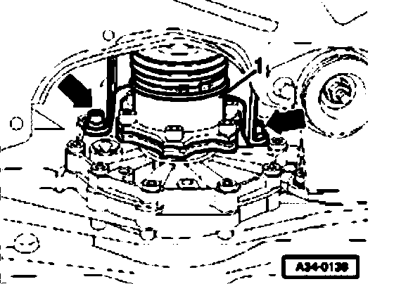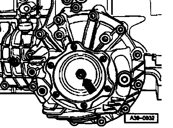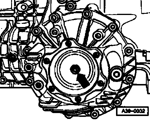 - Install bolt for drive flange (arrow, 23 Nm) while securing drive flange against turning, using a drift.