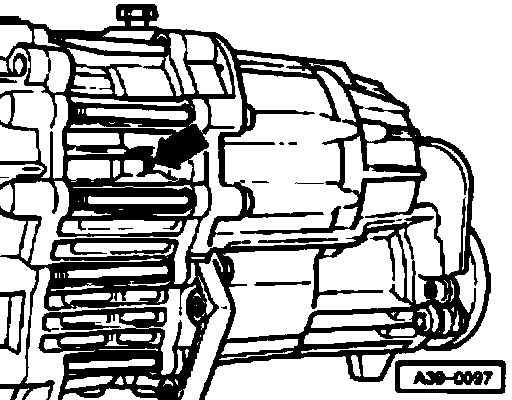 Note: An inspection opening is provided on the left side of the intermediate flange to check for oil leaks (arrow) for the sealing ring in drive pinion and the sealing ring in intermediate flange.