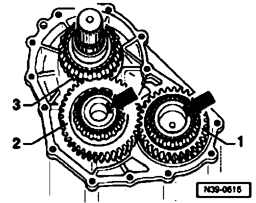 - Slide drive pinion -3- together with the intermediate pinion -2- into final drive housing up to stop (tapered roller bearing).