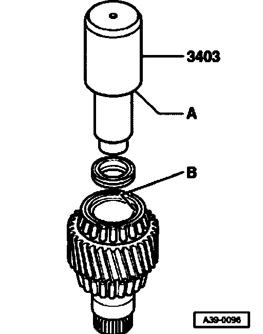 Contact surface -A- of thrust piece must lie against drive pinion -B-.