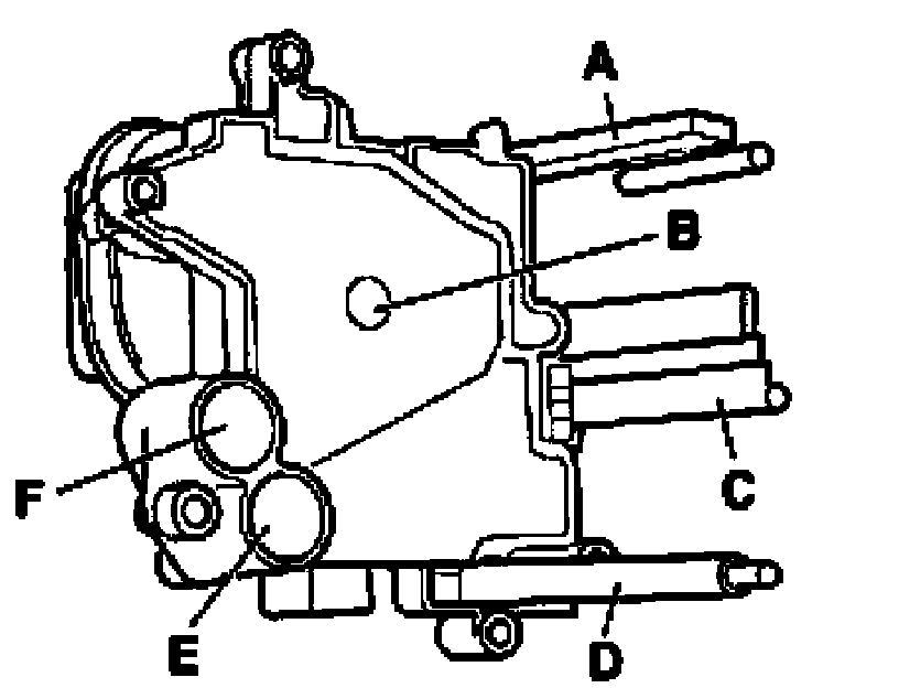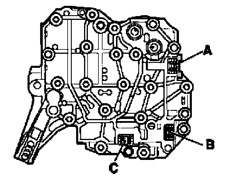 - Bring TCM -J217- into position (keep it straight to prevent it from jamming). Connectors -A-, -B- and -C- at rear of control module must plug into hydraulic control assembly.