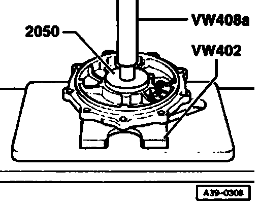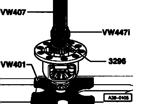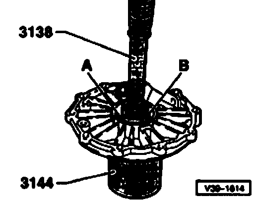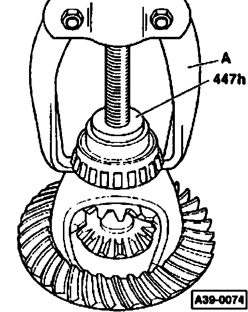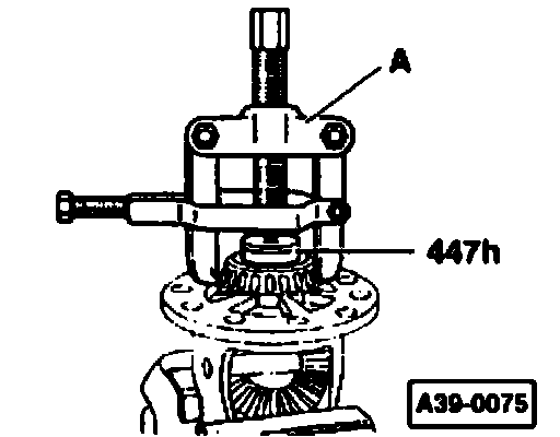 Note: In the differential housing there is a slot in the bearing seat for applying puller -A-.