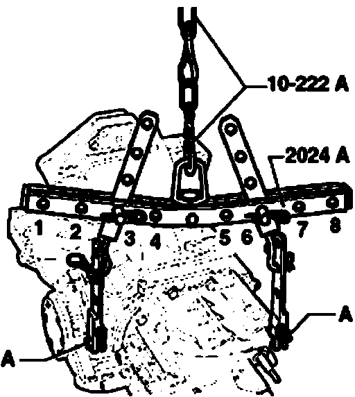 Lifting tackle 2024 A in conjunction with auxiliary hook 10-222 A can be used for transporting the transmission.