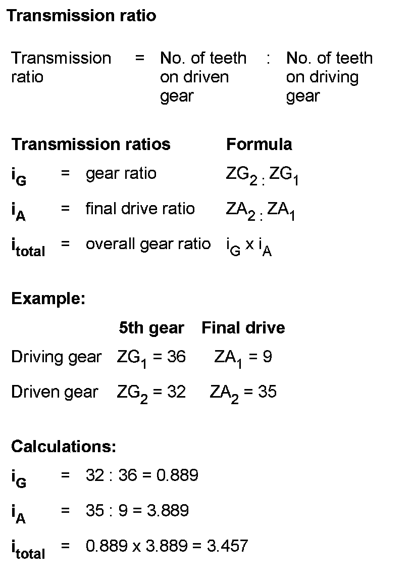 Calculation of transmission ratios "i"