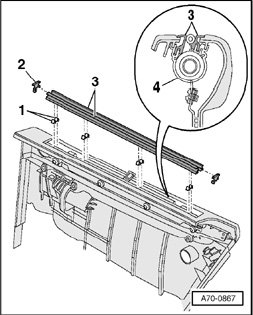 - Remove guiding strips - 3 - from holding clips - 1 -.