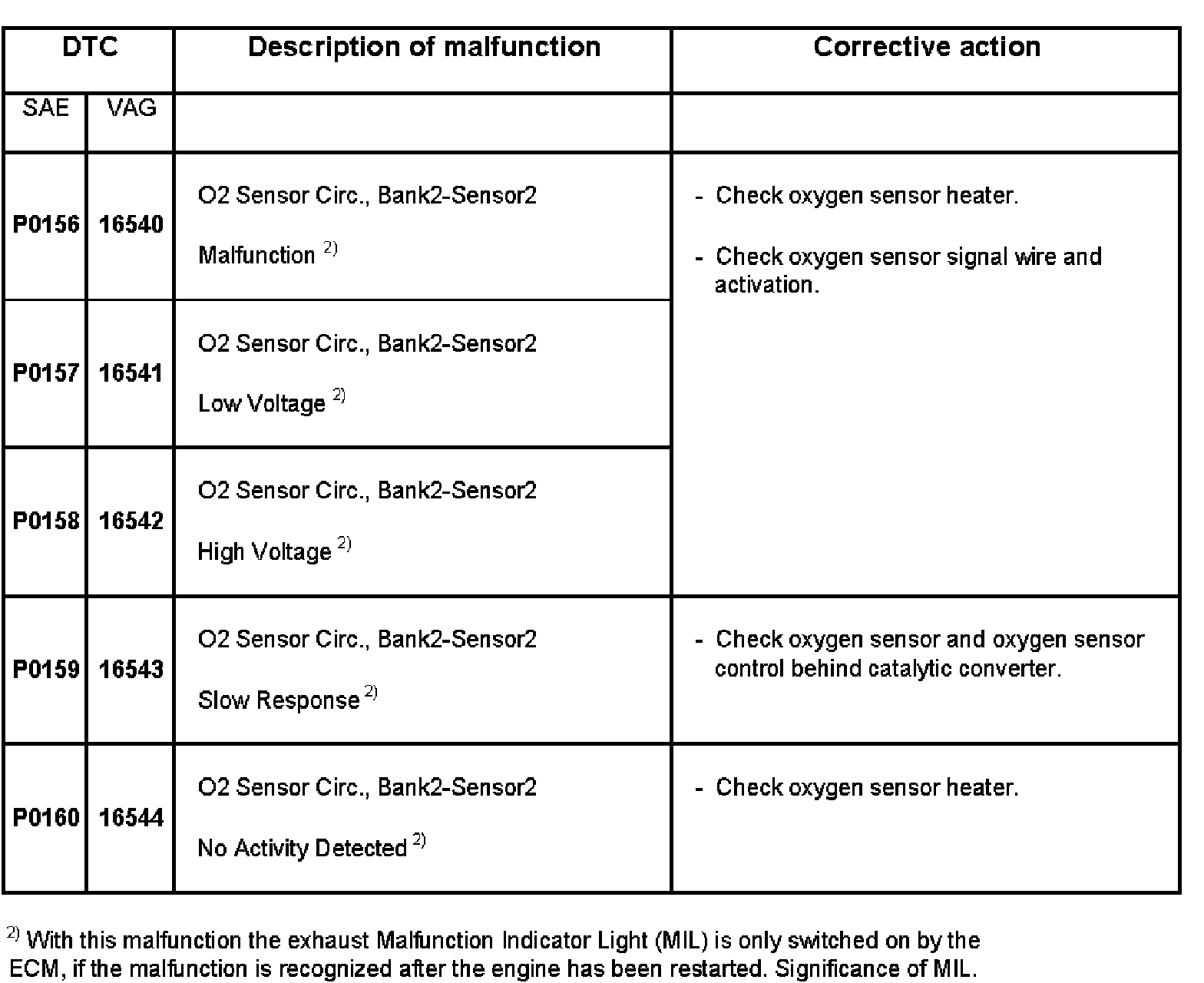 DTC P0156 - P0160:
