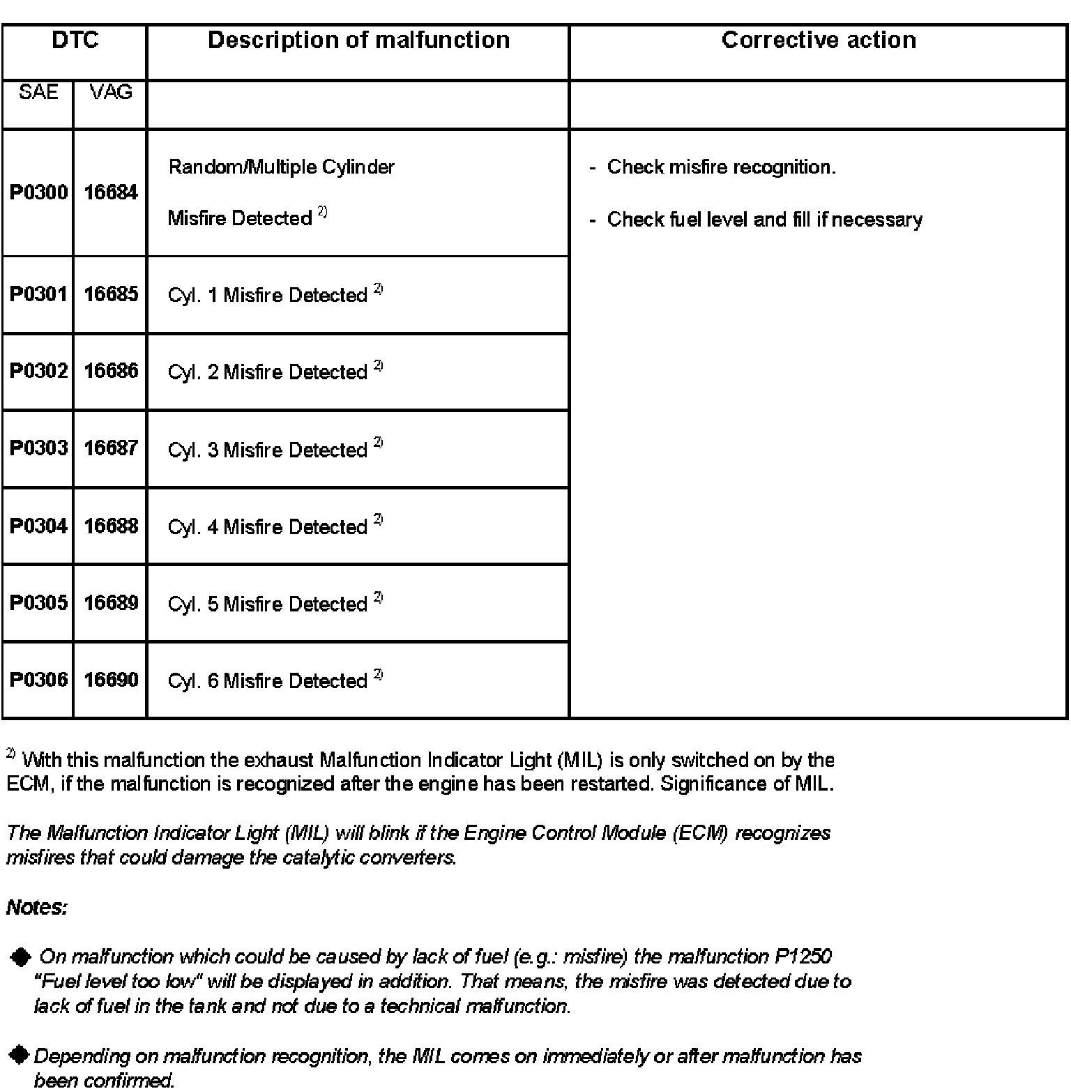 DTC P0300 - P0306: