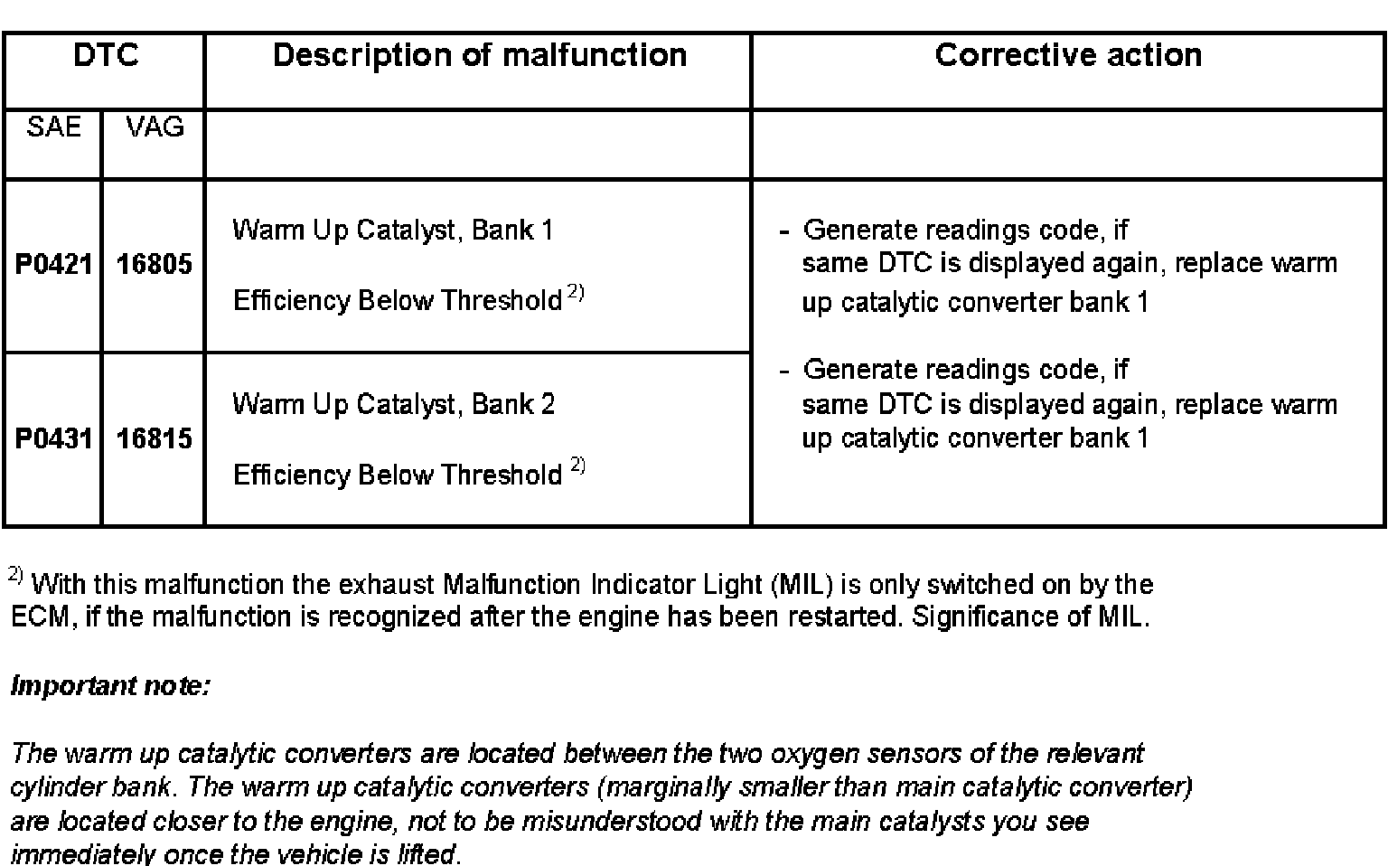 DTC P0421 - P0431: