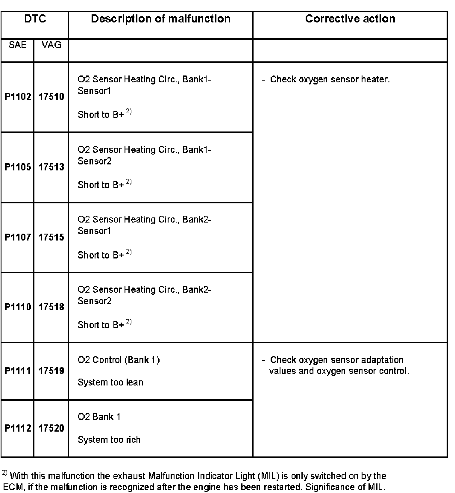 DTC P1102 - P1112: