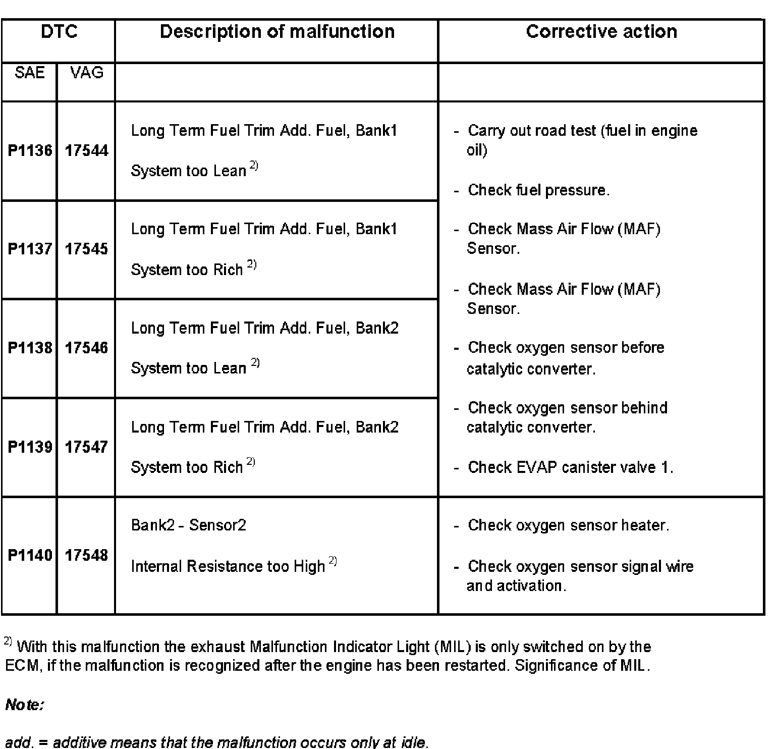 DTC P1136 - P1140: