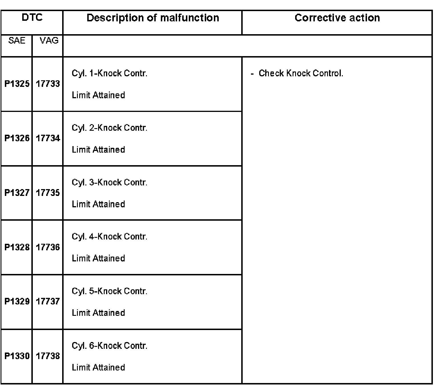 DTC P1325 - P1330: