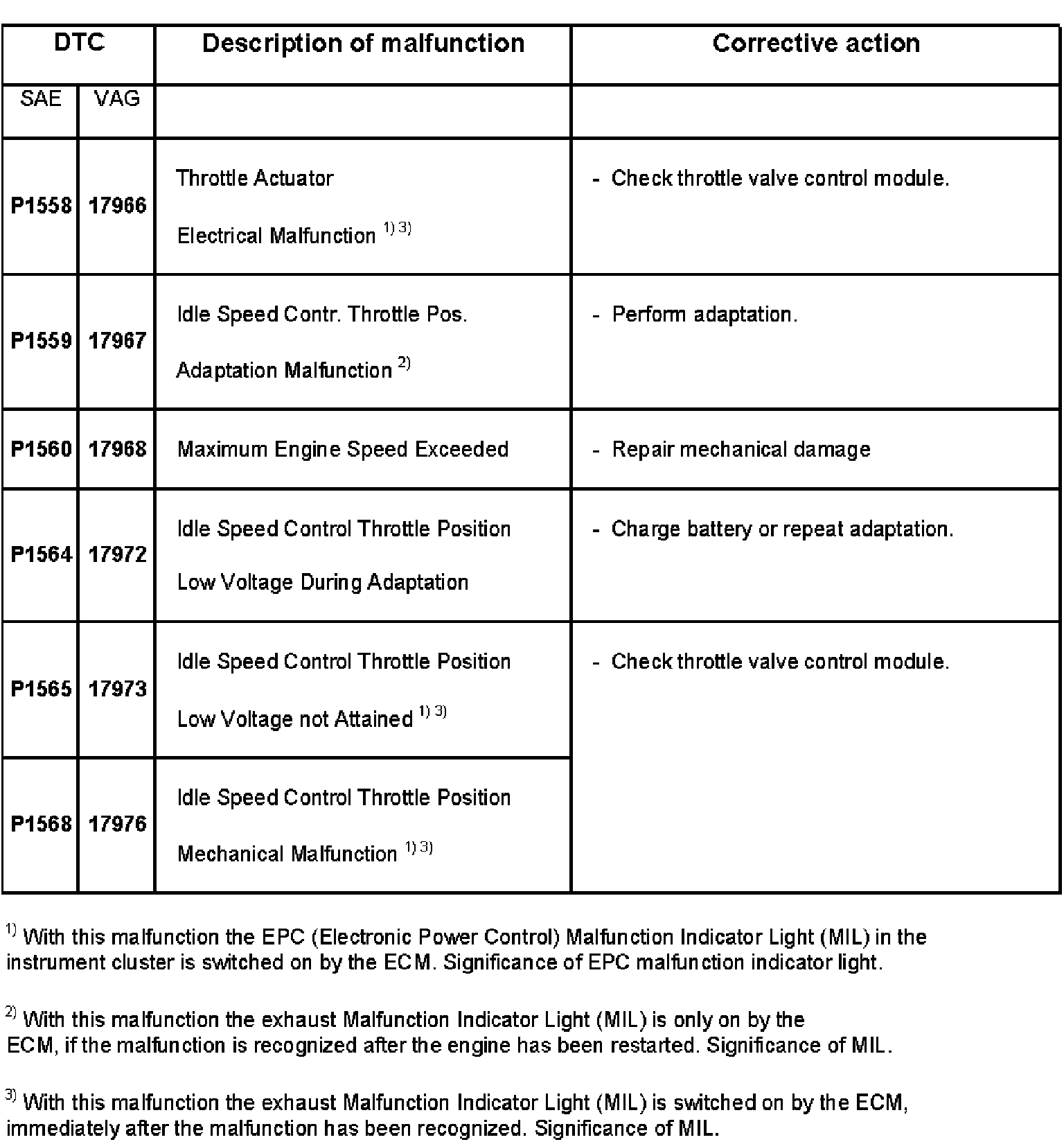DTC P1558 - P1568: