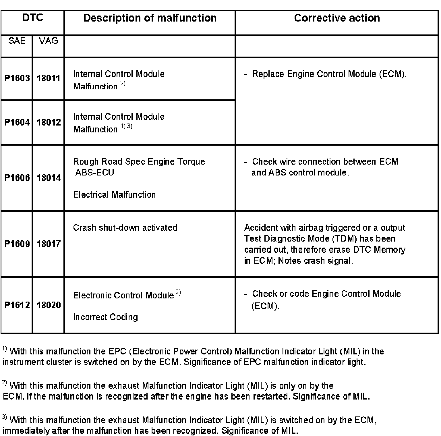 DTC P1603 - P1612: