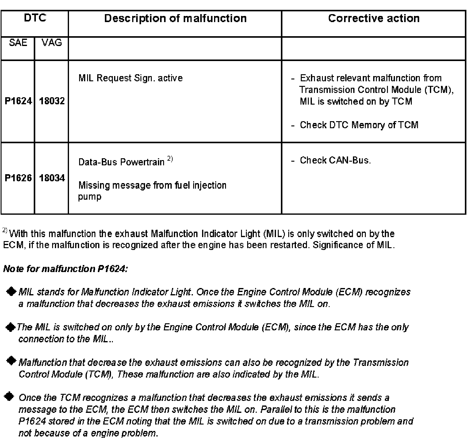 DTC P1624 - P1626: