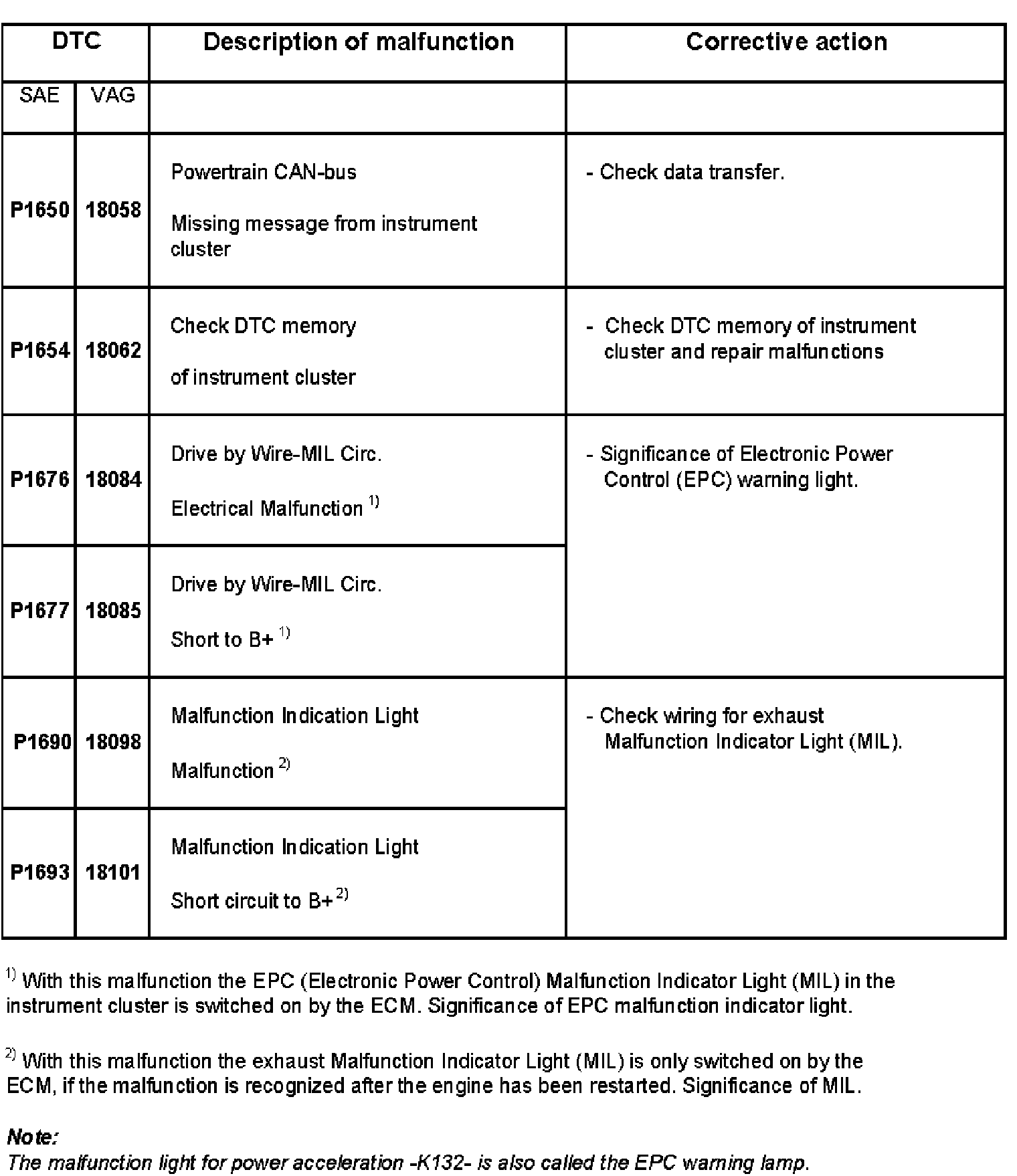 DTC P1650 - P1693: