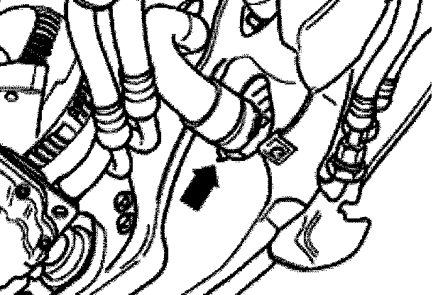 - Unbolt pressurizing fan and detach cooling lines for power steering hydraulic fluid -arrows-.