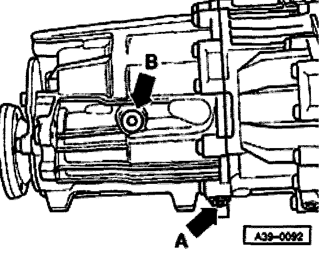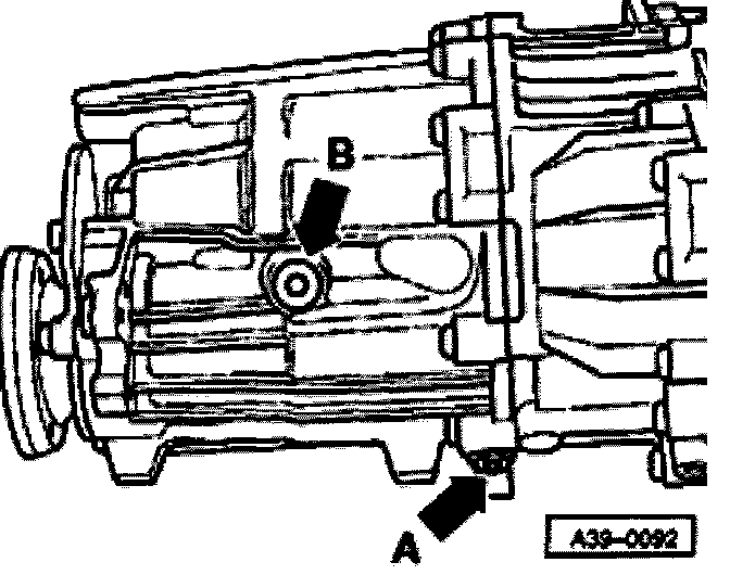- Remove oil filler plug (arrow B).