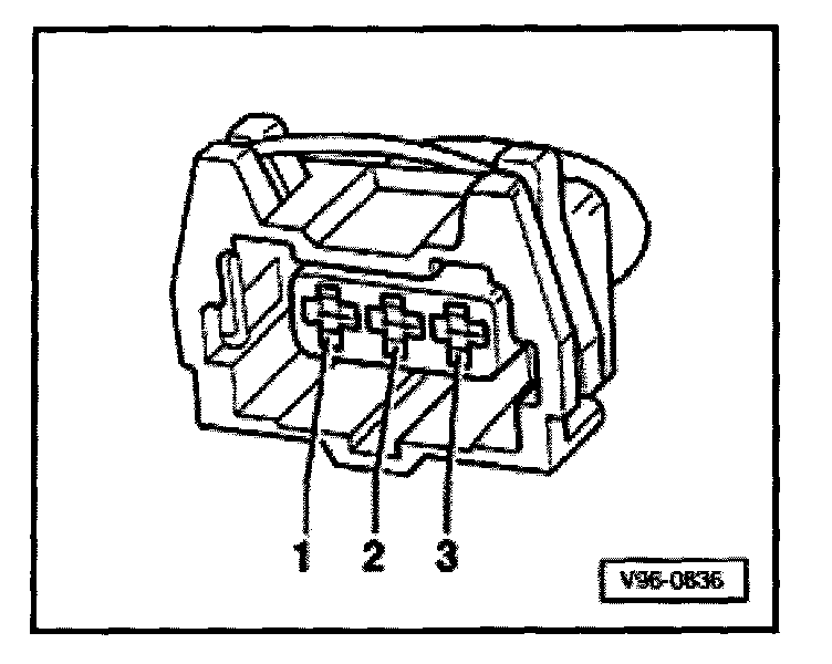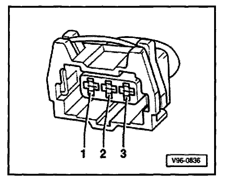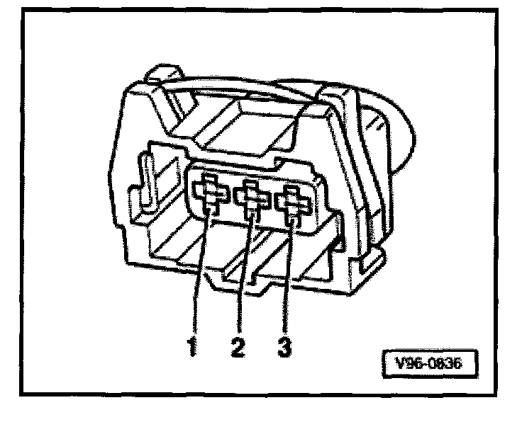 - Connect VAG1527 diode test lamp to terminals 1 and 2 of hall sensor connector from behind (without disconnecting connector from hall sensor).