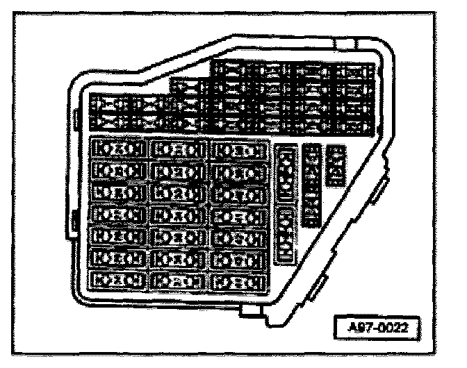 - Connect hand-held multimeter VAG1526 between Ground (GND) and relay panel contact 19 (B+; terminal 15 from ignition switch). Disconnect, then re-connect between Ground (GND) and relay panel contact 17(permanent B+; terminal 30 from battery).