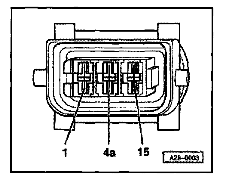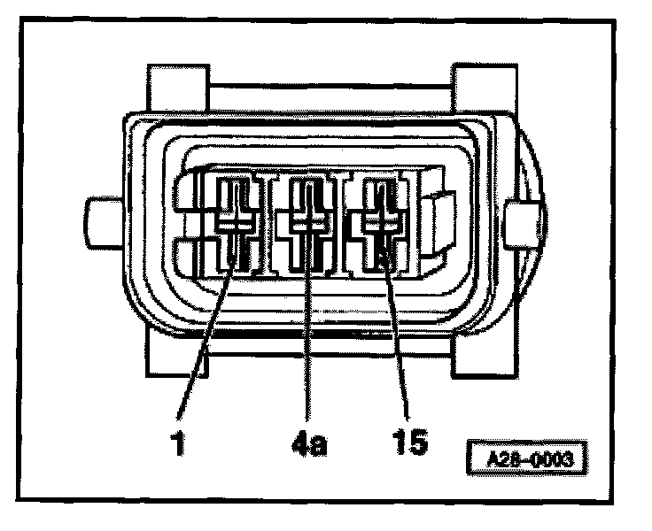- Connect diode test lamp VAG1527 to following contacts on connectors for power output stages: