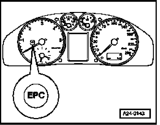 If malfunctions are recognized in the E-gas system during operation of the engine, the Engine Control Module (ECM) switches on the EPC warning lamp. (These malfunctions are listed in the DTC table). An entry is made in DTC memory at the same time.