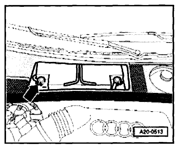 - Disconnect battery Ground (GND) strap (arrow) with the ignition switched off.