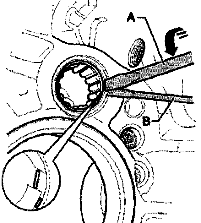 - Lever circlip out further by repositioning screwdriver -A-.