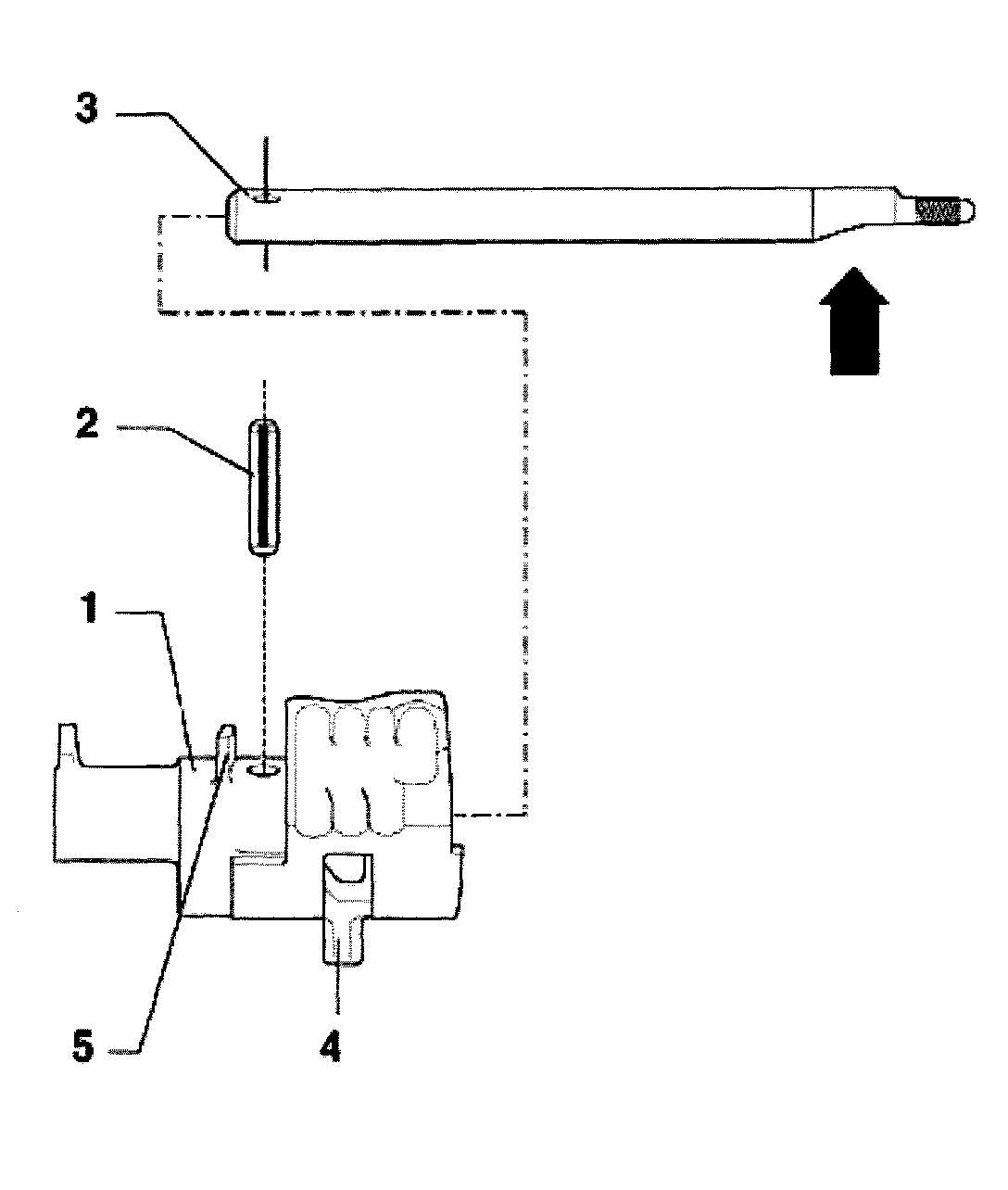^ Installation position: flat (arrow) and selector finger -4- face in same direction