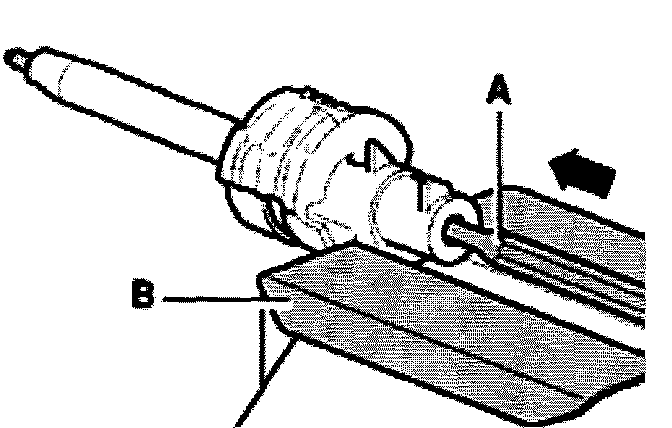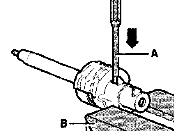 - Lift circlip out of the groove by turning one end of the circlip with a screwdriver -A-.