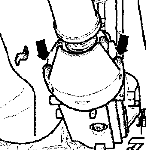 - Unbolt heat shields from transmission above left and right drive axles (arrows).