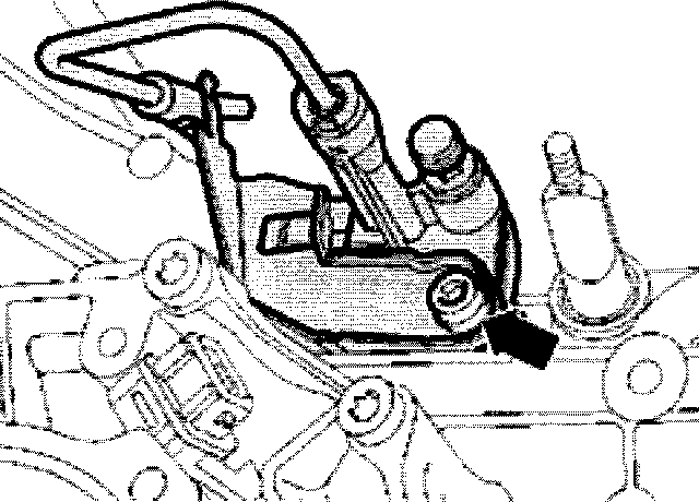 - Remove bolt (arrow) and take out slave cylinder from the rear. Do not open the pipe/hose system.