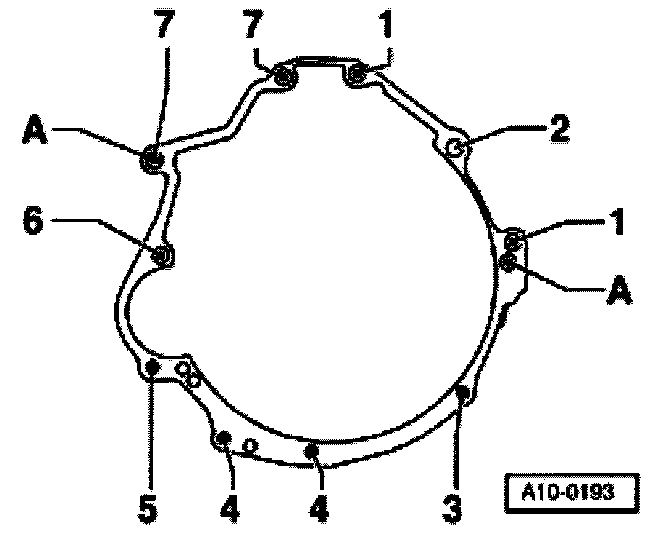 - Check whether dowel sleeves for aligning transmission with engine are in the engine flange. Insert if necessary.
