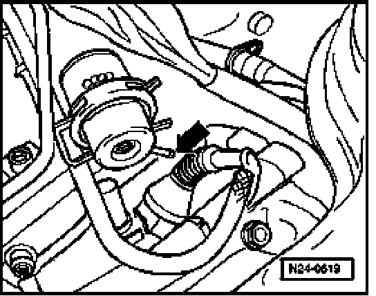 - Disconnect vacuum hose from fuel pressure regulator (arrow).