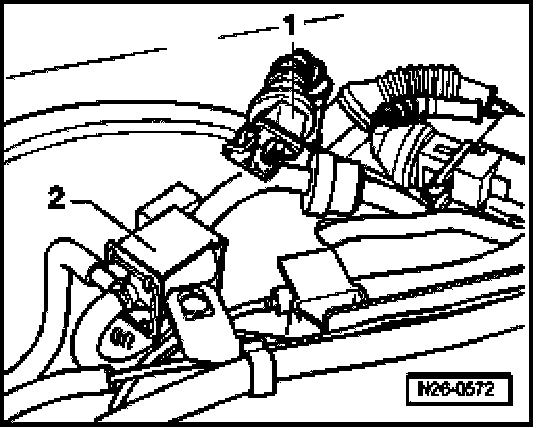 - Disconnect 2-pin connector -1- from Secondary Air Injection (AIR) Solenoid Valve -N112- (-2-).