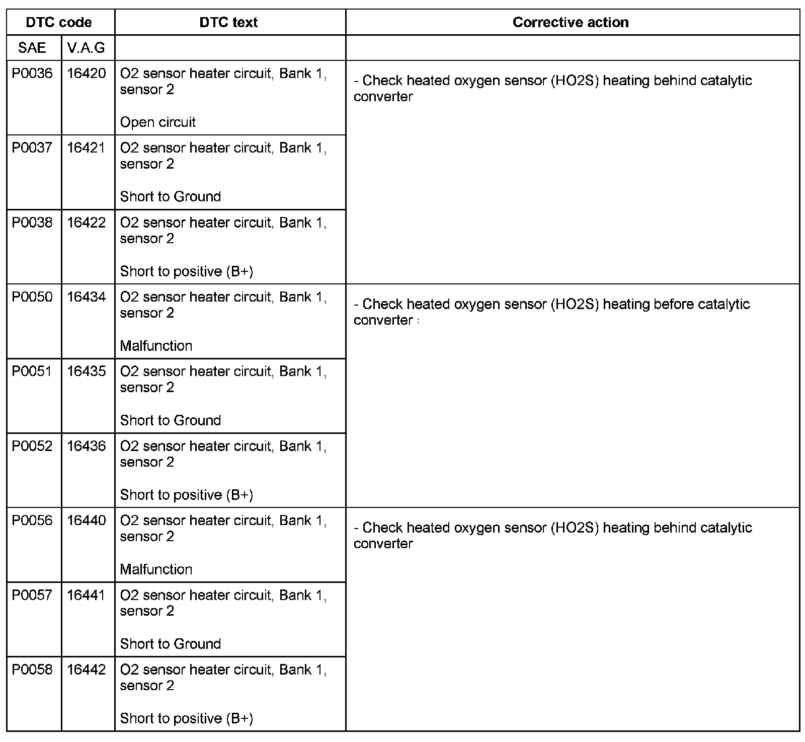 DTC P0036 - P0058: