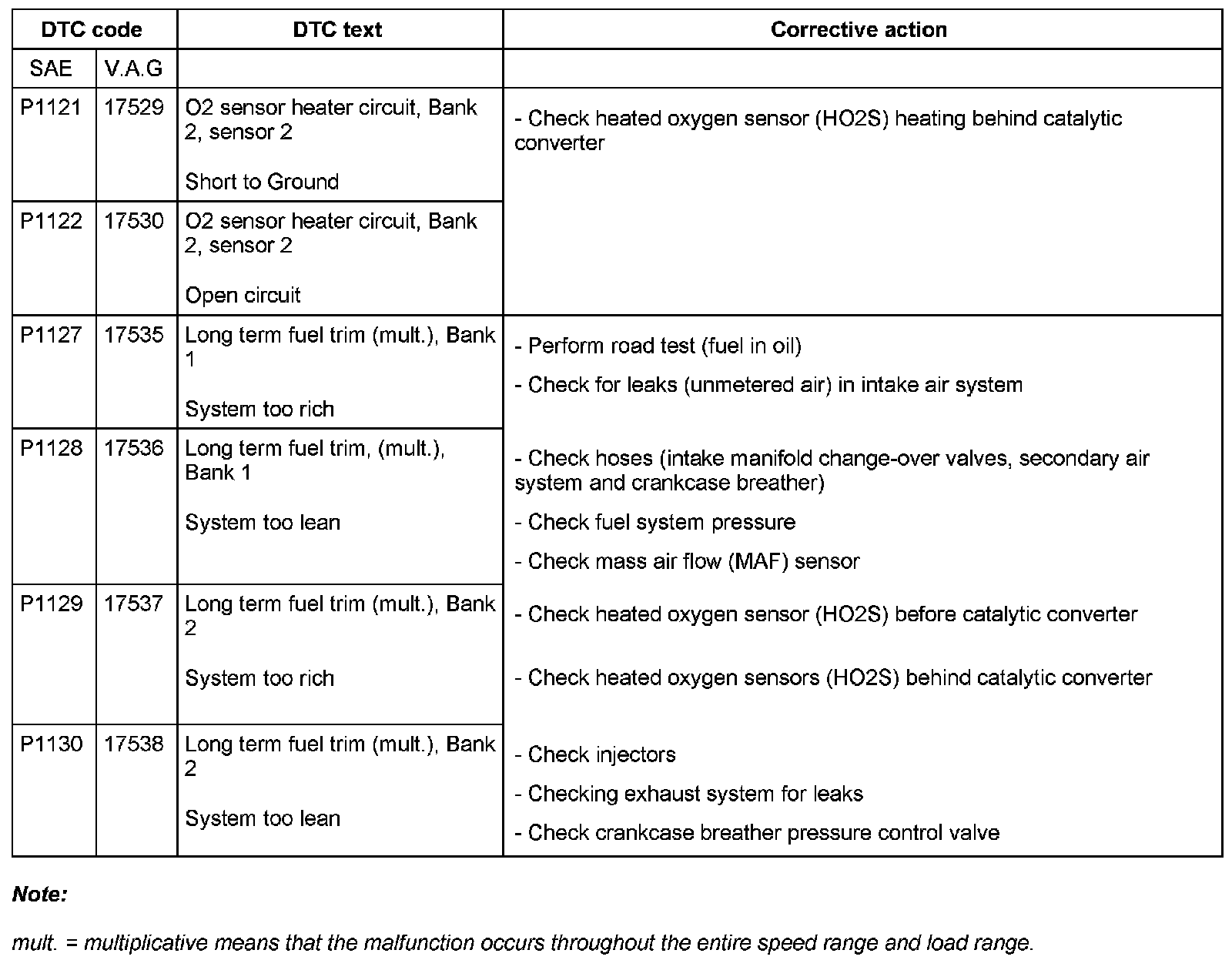 DTC P1121 - P1130: