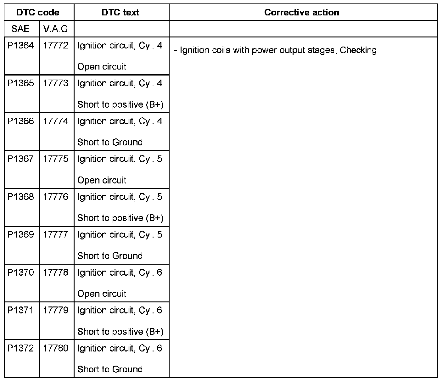 DTC P1364 - P1372: