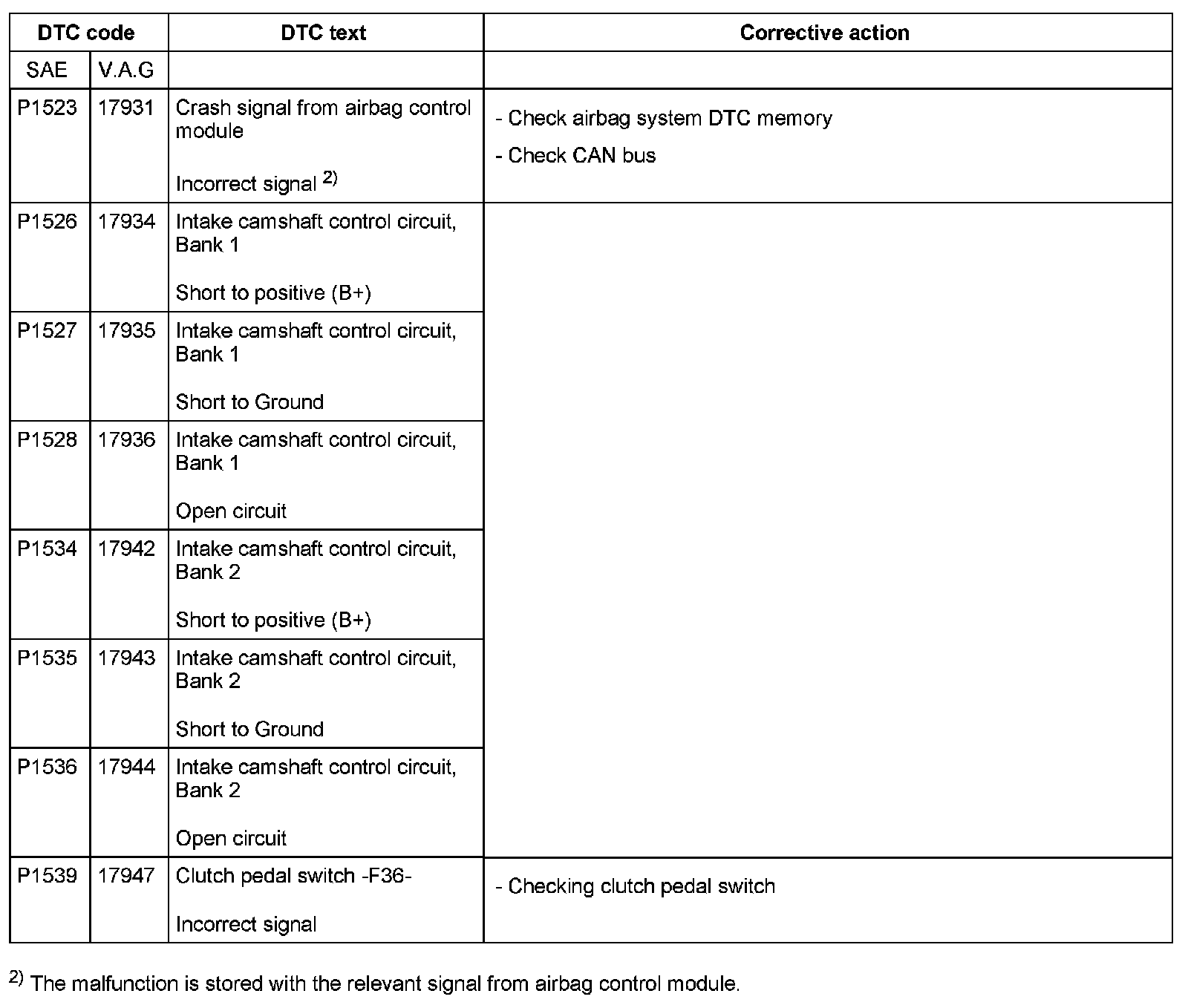 DTC P1523 - P1539: