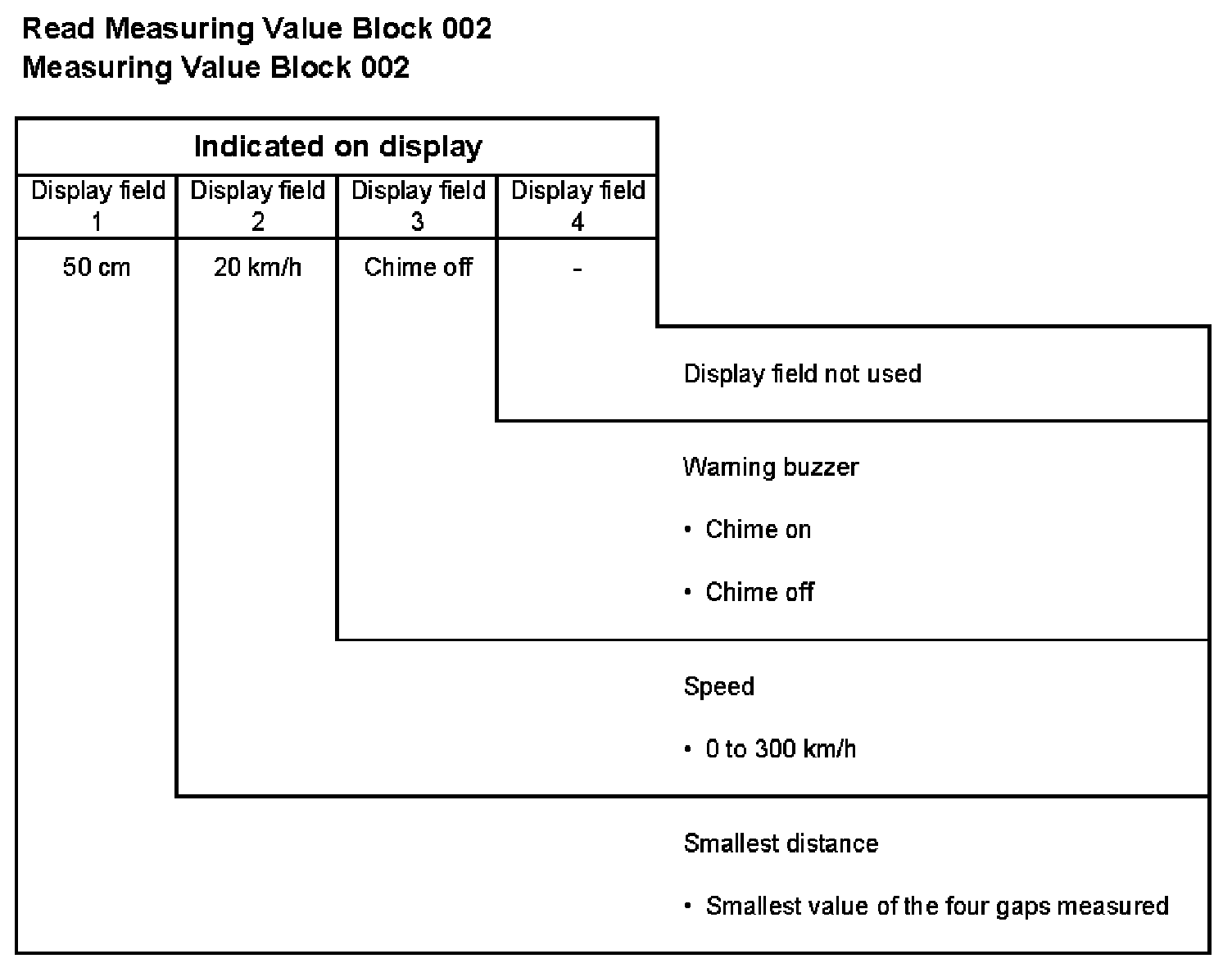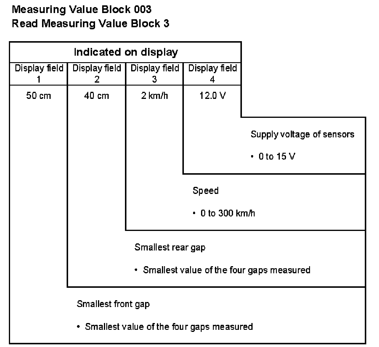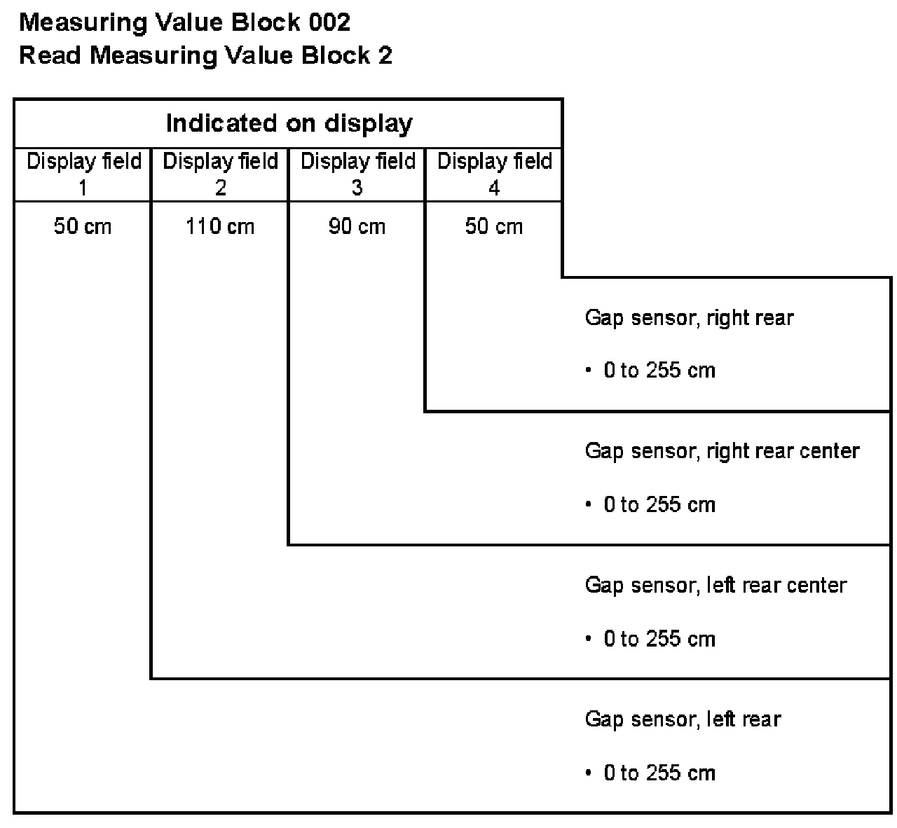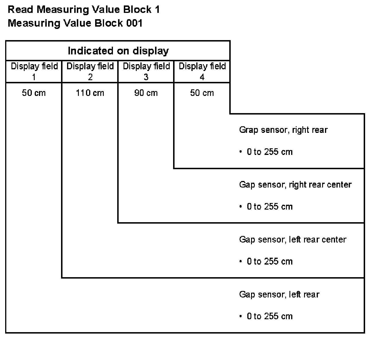 001 1 = Gap, sensor at left rear, cm