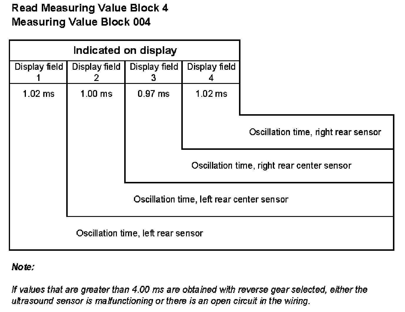 004 1 = Oscillation time, left rear sensor, ms